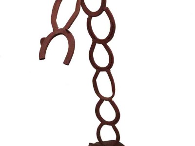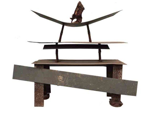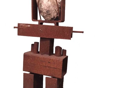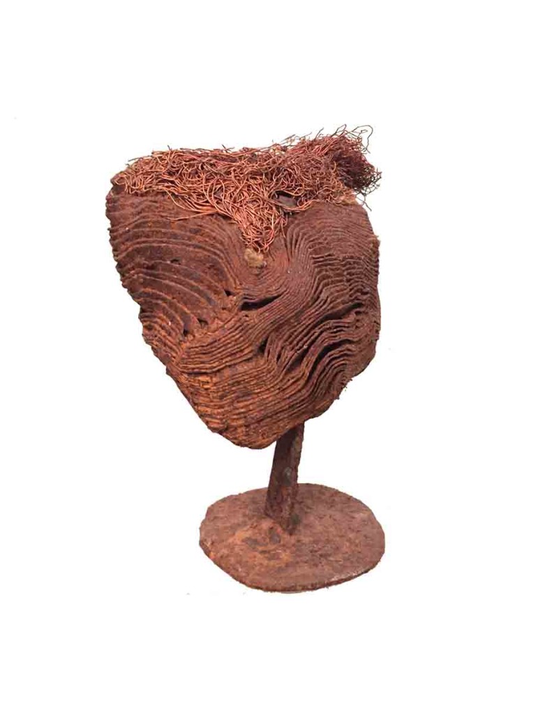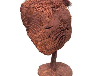Sculptures from an earlier period (totem poles, built from ovals with lunar and solar signs, spirals, hearts and mask-like faces) stand together with newer, more abstract images. Niermeijer called himself ‘the poet of scrap metal’. He sometimes found the materials for his works on ship wharfs, where he collected the remains of metal cutting machines.